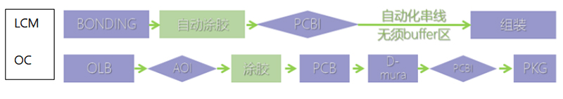 在平板显示器生产过程中,为防止线路受潮腐蚀,防尘及异物造成的划伤,常在ITO台阶电路上涂布Tutty胶以防湿绝缘,增加组件的耐震性与抗腐蚀性,从而保护IC和相关微电路。